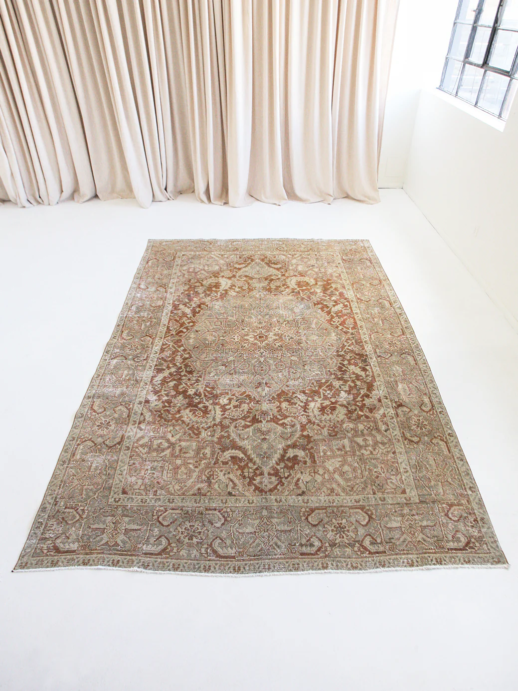 Because of the nature of these antique handmade rugs, irregularities are likely to exist and are not considered defects.