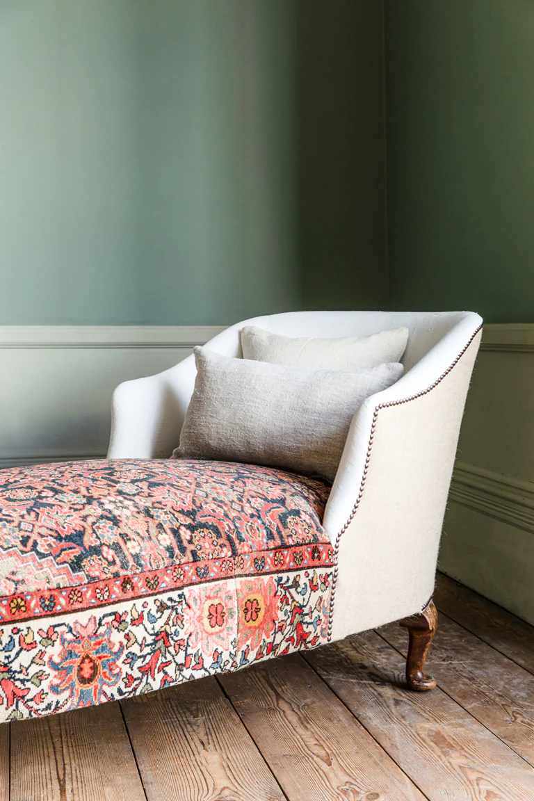 Origin: AÂ 1920 Malayer rug paired with a 19th century French chaise