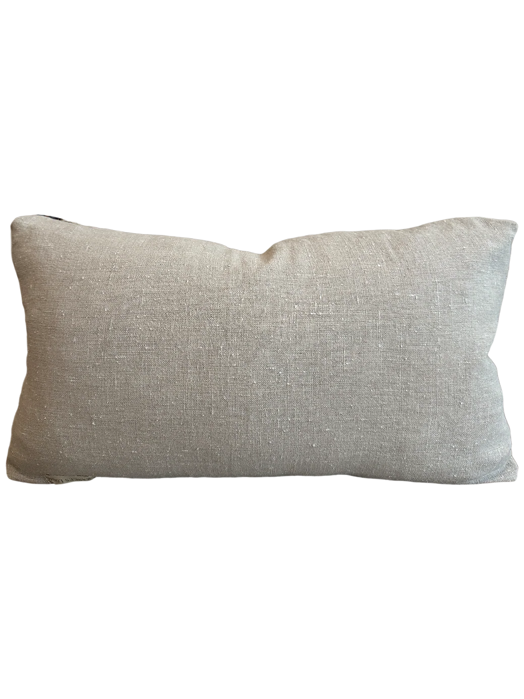Entirely antique, this pillow pairs a handwoven rug fragment with antique French linen for a textured, timeless feel. It’s finished with a sturdy unlacquered brass zipper.