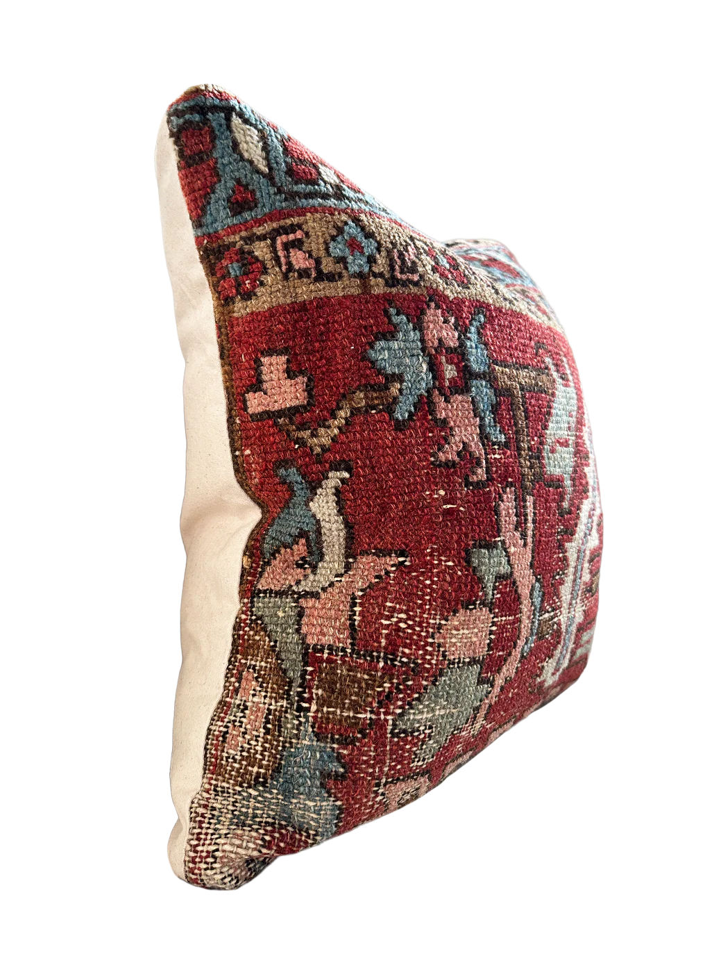 This pillow pairs a handwoven rug fragment with pure cotton canvas for a textured, timeless feel. It’s finished with a sturdy unlacquered brass zipper.