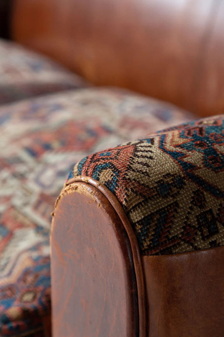 Origin: AÂ 1900's Afshar rug paired with a 19th century French sofa.Â