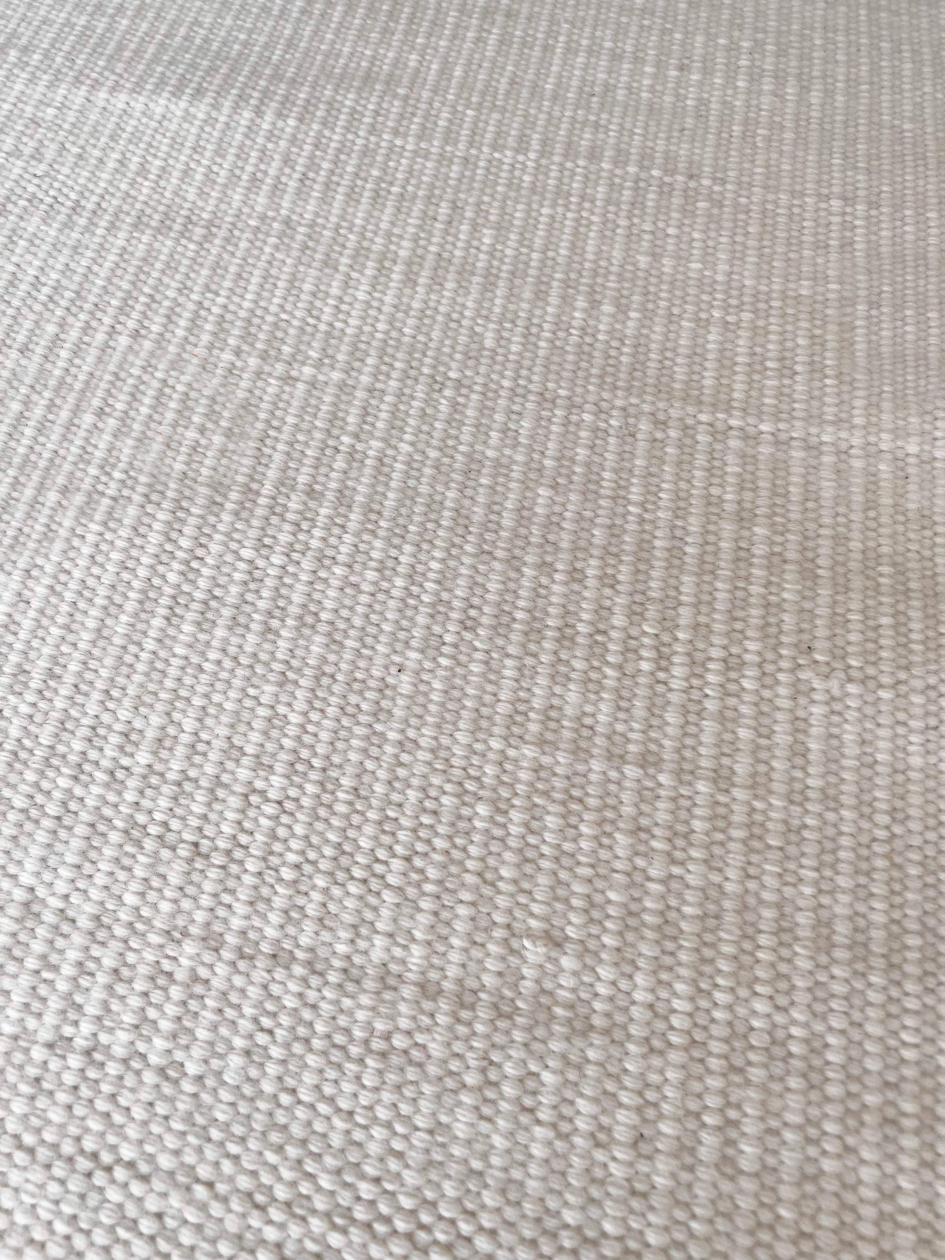 The perfect neutral base for any antique rug, this flat weave is hand-woven with premium undyed New Zealand wool, with a subtle stripe finish that adds an element of interest without being overpowering. The soft, densely-woven wool is lovely underfoot but best paired with a thick rug pad if you want a cushy feel.